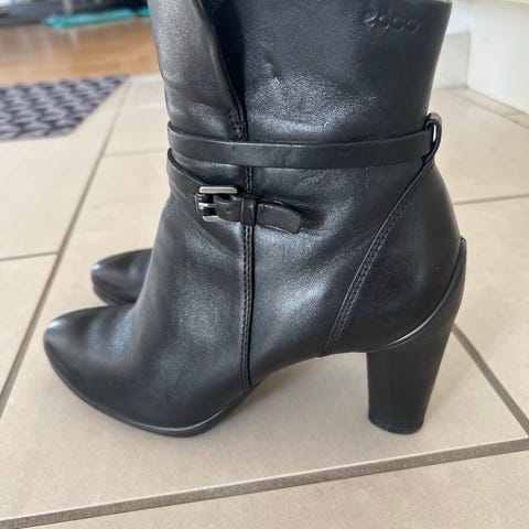 Ecco støvler i størrelse 40. Kort model med hæl og lynlås i siden. Små brugsspor.