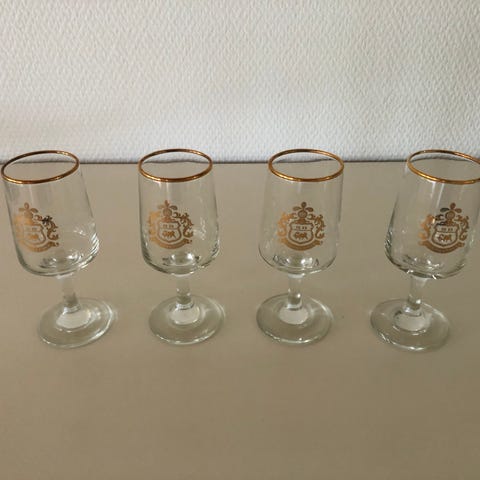 12 fejlfrie Skjold Bourne likør- eller portvinsglas med guldkant.