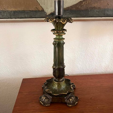 Dette er en bordlampe i korintisk søjlestil der er kendt for sit detaljerede design inspireret af oldgræsk arkitektur. Det mest karakteristiske detaljer er kapitlet der er udsmykket med udkårne akantusblade og ruller.. Vægt - 5,7 kg. Højden - 70 cm. Bud modtages gerne..