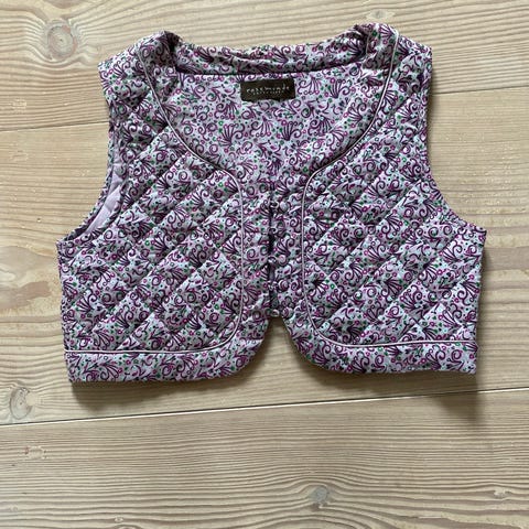 Love & Divine vest til kvinder i størrelse XS. Vesten er i beige bomuld med ternet mønster og har trykknaplukning foran.