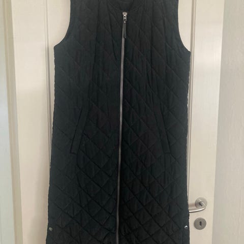 Smuk quiltet lang og lun Love & Divine vest i beige tern