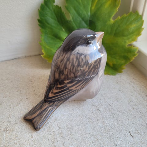 Inspireret af gråspurvens sociale væsen og opfindsomhed skabte Gunnar Flørning en lille charmerende fugl i teak 8 cm