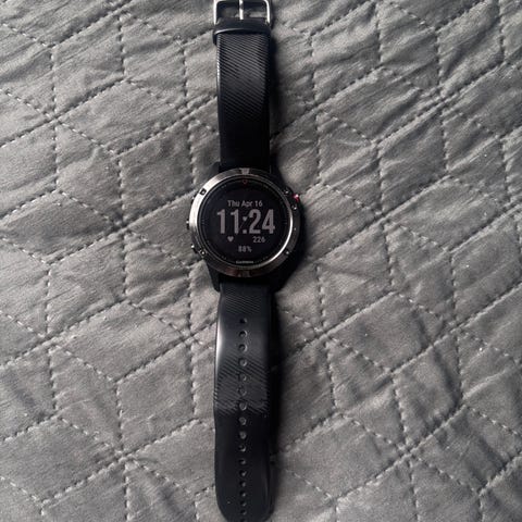Garmin Fenix 3 HR Sapphire sportsur uden ridser. Der er indbygget pulsmåler på håndleddet og ridsefrit safirglas. Der medfølger en helt ny sort silikone-rem med værktøj samt oplader-/sync kabel med USB-stik. Uret er fejlfrit og en opladning holder let en uge i smartwatch tilstand samt 2 x 5 km løb.