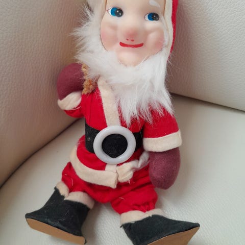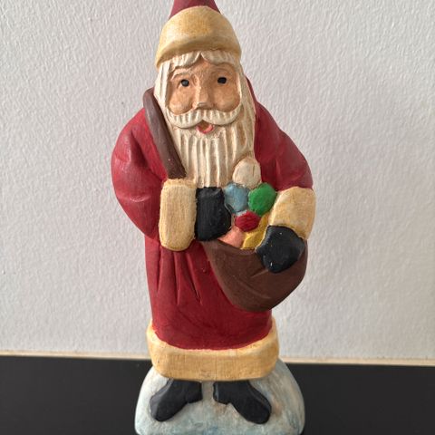 Flot og anderledes nisse., Flot velholdt nisse med træsko, hoved og hænder lavet i træ. Kroppen er blød med flot syet tøj i “uld” lignende stof. Et samleobjekt. Højde 22 cm. Kan sendes på købers regning. Se evt mine andre juletings annoncer.
