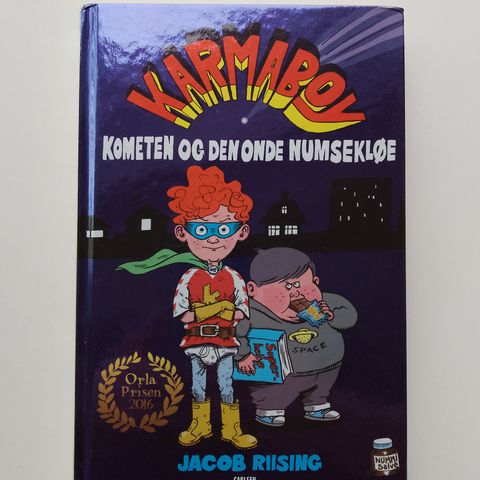 Karmaboy - kometen og den onde numsekløe, Jacob Riising, En komet er på vej for at udslette Skovlunde Bytorv, og selvom alle virker ligeglade, er byens nye superhelt Karmaboy fast besluttet på at redde det gamle torv Indbinding