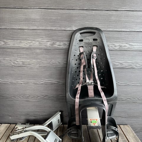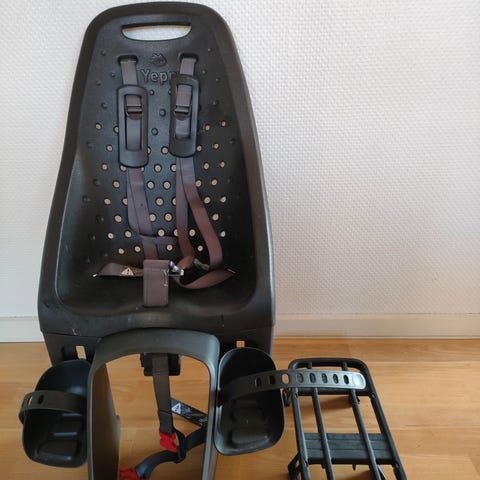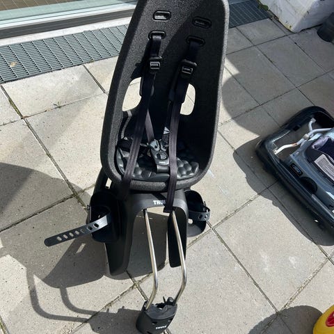 Brugt i 3 år, lidt ridser men stadig i god stand. Stol kan monteres på langt de fleste cykler, da den monteres fast på bagstellet med det tilhørende beslag. Stolen kan tage op til 22kg.
