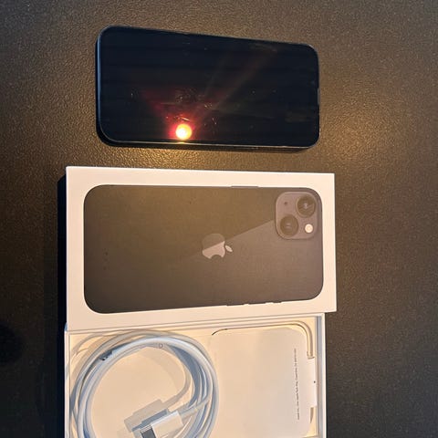 Apple iPhone 13 i hvid farve. 128 GB. Mobilen er i virkelig god stand og alt virker som det skal. Der er en lille skræmme i højre hjørne (se billede) men ellers er den fejlfri, da jeg har haft cover og panserglas på hele tiden.