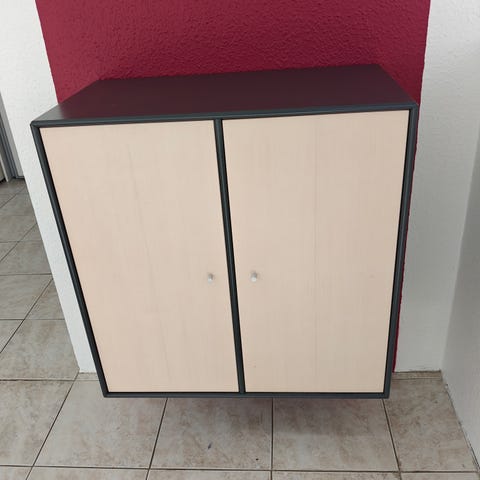 Montana reoler, 2 stk., 70×70×30 cm hver. Stabile og funktionelle, men med store ridser og brugsspor. Ville have godt af at blive malet eller lakeret.