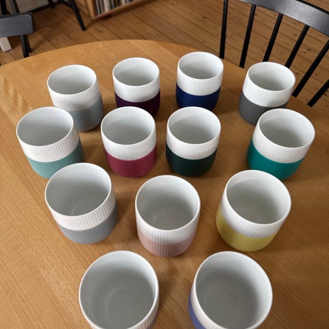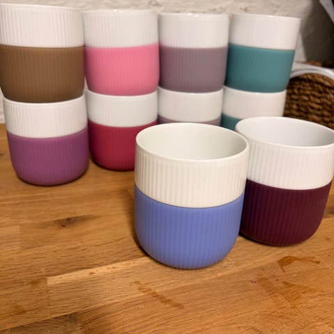 Sælger 6 flotte Royal Copenhagen Riflet Contrast krus i forskellige farver.