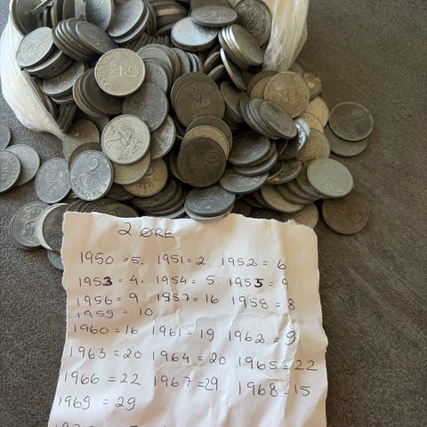Danmark 2 øre mønter blandede årgange