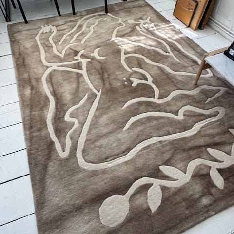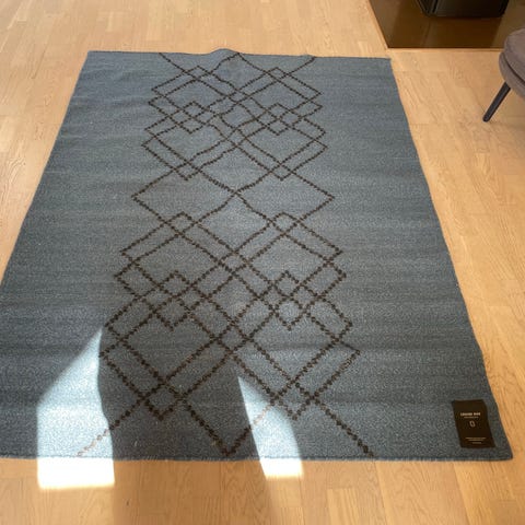 Det måler 175 cm i bredden og 245 cm i længden. Tæppet er i 100% uld og der er kun lavet denne ene af slagsen.