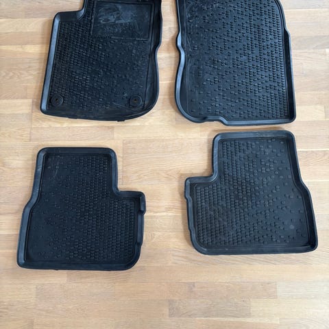 original Peugeot 3008 (gen.2) tekstil bilmåtter sæt i sort. Sættet består af tre måtter, herunder en lang bageste måtte og to separate måtter til forreste række. Måtten til førersædet er meget slidt, mens passagersæde måtten og den bagerste måtte fremstår i rigtig flot stand.
