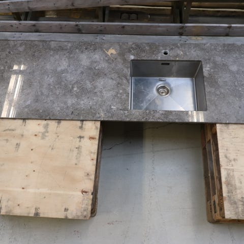 Der er integreret vask og armatur samt kogeplade ovn, og emhætte.