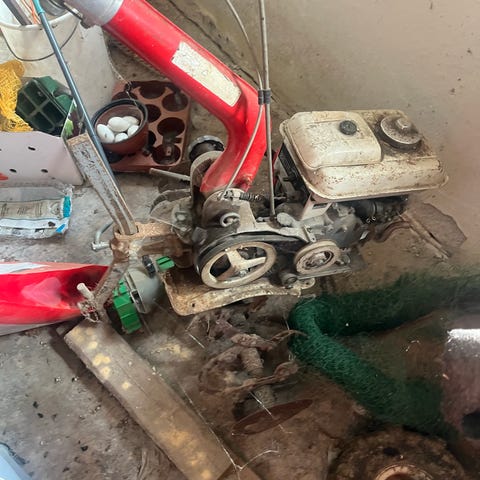 Alko havefræser med benzinmotor. Med aftageligt transporthjul. Velegnet til fræsning og løsnen af jord i havebede.