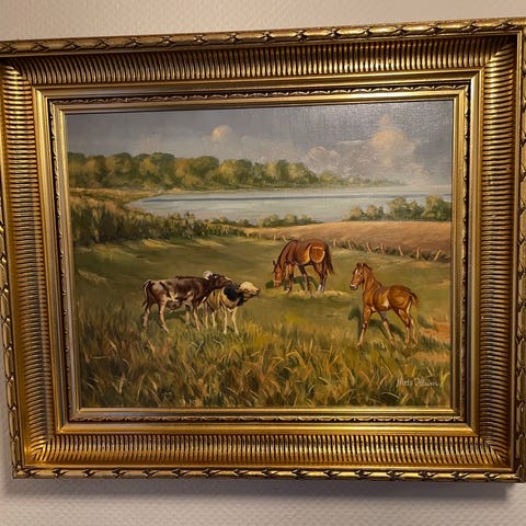 Maleriet er signeret og fremstår i pæn stand med dekorativ guldramme, som passer godt til værket.