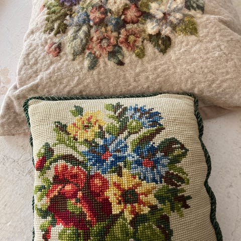 pyntepuder med broderi i flerfarvede mønstre. Pudebetrækkene har forskellige korsstingsmotiver, blandt andet blomster og geometriske mønstre i flere farver på lys bund. Velegnet som dekorative puder i stue, soveværelse eller andre opholdsrum. Pr stk 45 Kan bruges i sofa, lænestol eller på seng for at tilføje tekstil og mønster til indretningen.