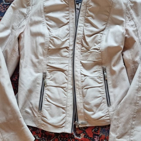 Skindjakke, str. 36, ONSTAGE Danmark , Grøn lime med stikninger, Skind, God men brugt, Fineste bløde skindjakke i frisk lime med smukke finesser. Str 36.