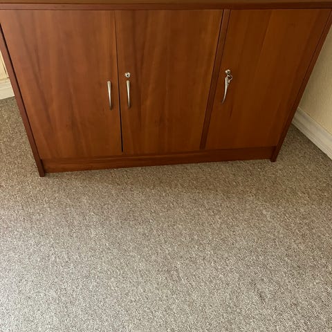 Afsyret skab med én låge og indvendige hylder. Skabet har tre hylder, som giver god opbevaringsplads til f.eks. tøj, service eller andre genstande. Overfladen fremstår i naturtræ med synlig årestruktur. Velegnet til brug i stue, soveværelse, entre eller køkken som opbevaringsmøbel.