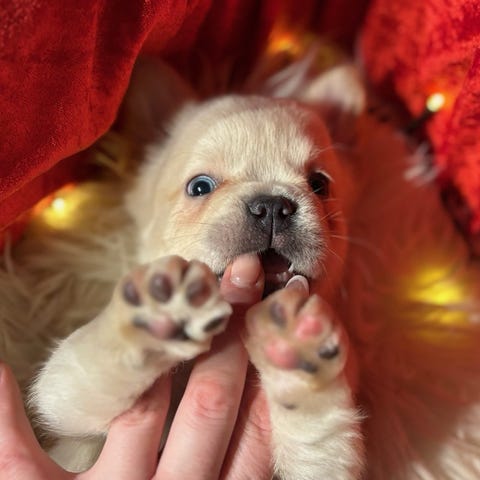 De vokser op midt i vores hjem, i stuen sammen med os og andre hunde. Det betyder, at de bliver trygge, sociale og vant til hverdagens lyde, mennesker og kærlig kontakt fra starten af livet.