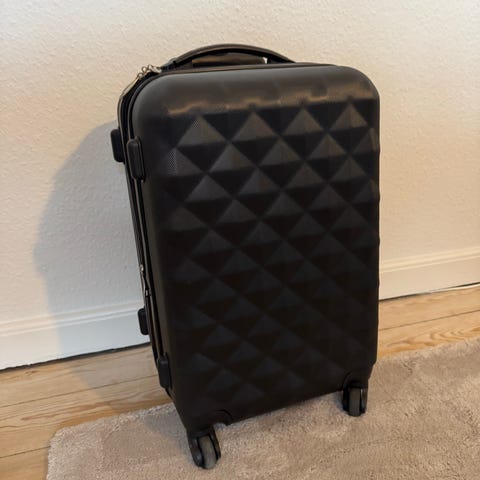 God og praktisk kuffert i brugbar stand – nem at rulle og pakke 👍
