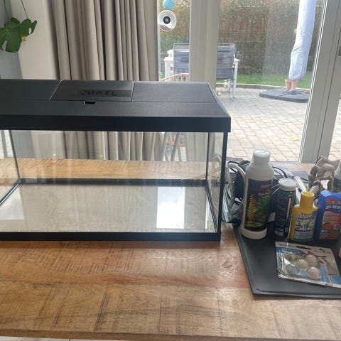 Jeg vil gerne sælge min 22L akvarium uden lår. Den er tæt, men trænger til rengøring. Der er lille afdeling til sump, som er en fordele, pga godt filtrations system.