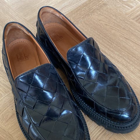Billi Bi A2780 loafers i str. 40. Skoene er fremstillet i glat læder i en klar grøn farve (Paraiso) med sorte såler. Over vristen er der en rem med guldfarvet metaldekoration. Indvendigt er der læderfor med præget Billi Bi x Magasin-logo. Klassiske loafers, der kan bruges til både hverdag og mere formelle anledninger.