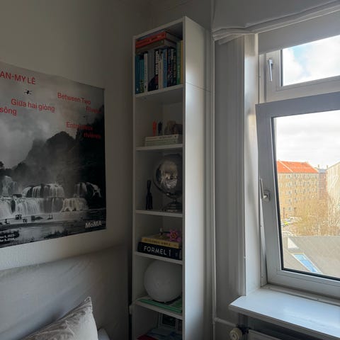 Reolen er i pæn brugt stand med almindelige brugsspor. Hylderne kan justeres i højden efter behov.