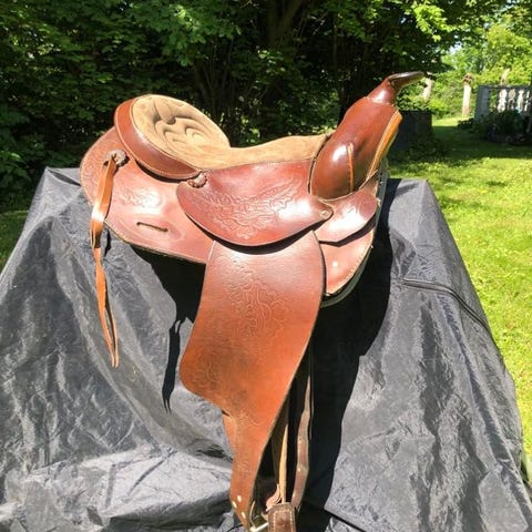 Thorn Walsall England sadel i brun læder. Klassisk engelsk sadel med knæstøtter og dybe paneler. Fremstillet i glat og delvist præget læder med flere gjordstropper til justering. Egnet til allround ridning. Mærkeplade med logo og Walsall England under sadlen. Størrelsesangivelse er præget i læderet under klappen. Sælges med gjord, lammeskind og overtræk