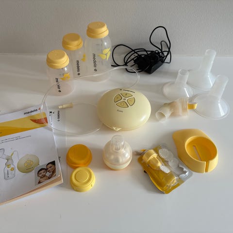 Brystpumpe i topkvalitet fra Medela i god stand og med 2 ekstra helt nye konnektorer. I original emballage og medfølgende brugervejledning.