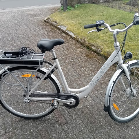Har fået sat en stor cykelkurv på, og dæk er udskiftet til punkterfrie.