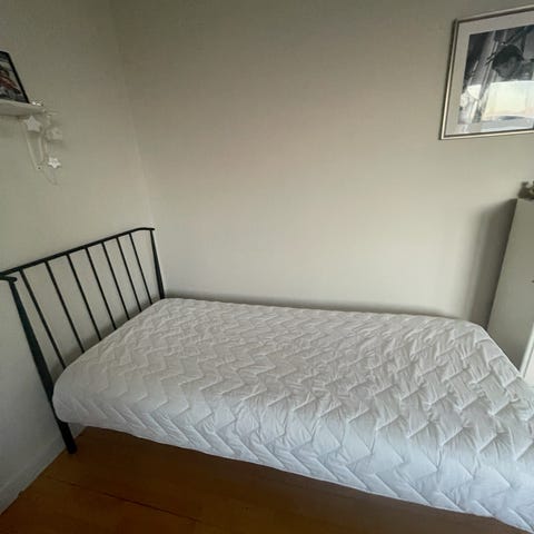 Godt brugt, men fejler ikke noget. Dog bedst til en barn/let person. Inkl fin topmadras.