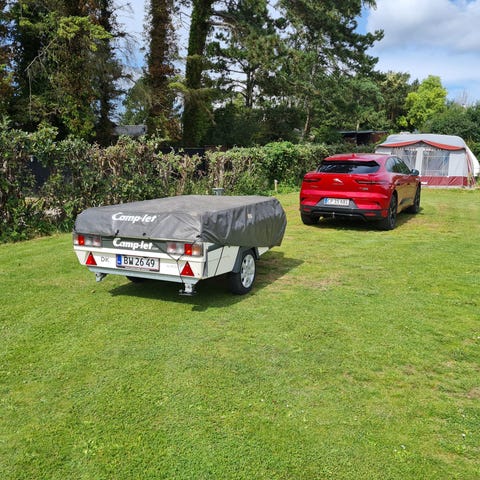 Camp-let Royal teltvogn med fortelt i grå og beige nuancer fra 2009.