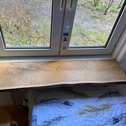 En rigtig fin vindueskarm i lys sten. Mål 113 cm., 22 cm., 2 cm.