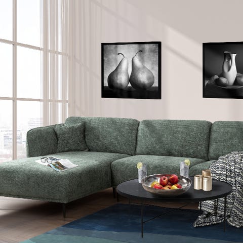 Dallas modul sofa, I grøn fjølstof. 4 pyntepyder