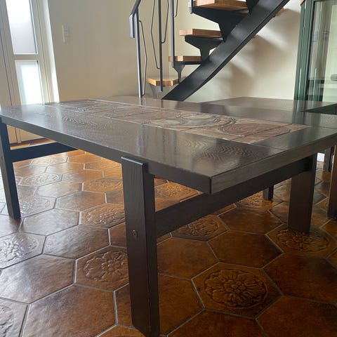 Rigtig flot sofabord med egetræsben.