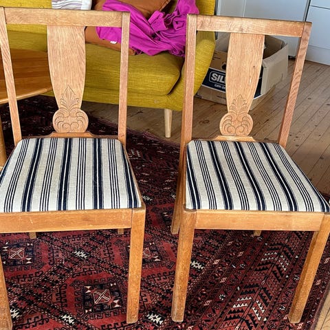 Spisestuestole i egetræ med polstret sæde beige