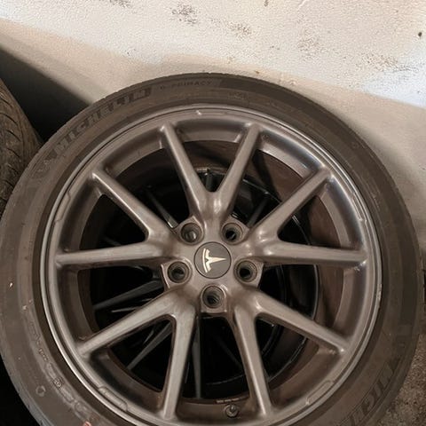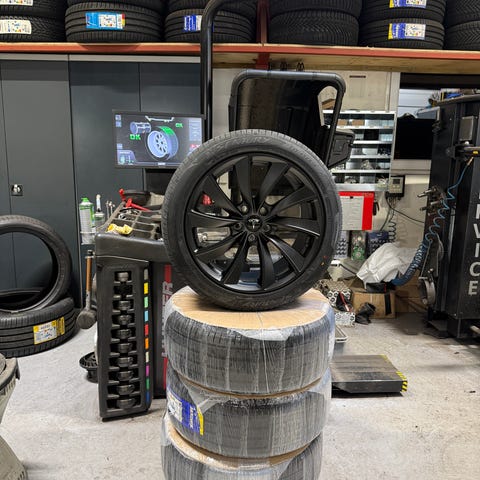 18 tommer org. Tesla fælge med aerocaps + sommerdæk