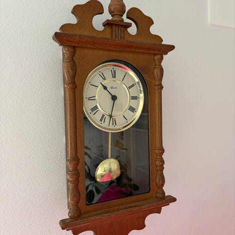 Vægur pendulur i træ med glasfront