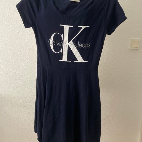 Tommy Hilfiger hverdagskjole til damer i str. M. Kjolen er fremstillet i bomuld og har kortærmet t-shirt-snit med rund hals. Farven er blå, og der ses et lille Tommy Hilfiger-logo på brystet. Velegnet som enkel hverdagskjole i et behageligt bomuldsmateriale.