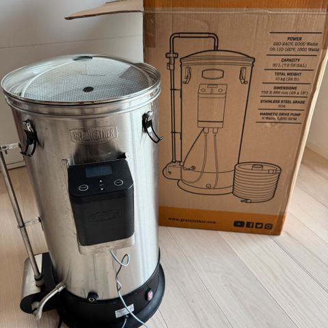 Brewolution Ferminator gæringsskab til ølbrygning. Enheden er udført i isolerende materiale med integreret styringspanel og ventilator på fronten. Ferminatoren er beregnet til temperaturkontrol under gæring af øl og kan anvendes sammen med gærspande eller gæringstanke, der passer i skabet. Kontrolpanelet har start/stop-funktion og regulering af blæserhastighed til styring af luftcirkulation og temperatur omkring gæringsbeholderen.
