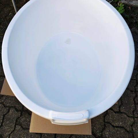 Den har fungeret som badekar til vores datter.