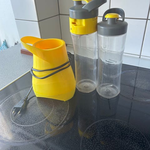 Bemærk at elastikken under knivenheden er knækket, men det ændrer ikke på at den stadig er fuld funktionsdygtig 🥤