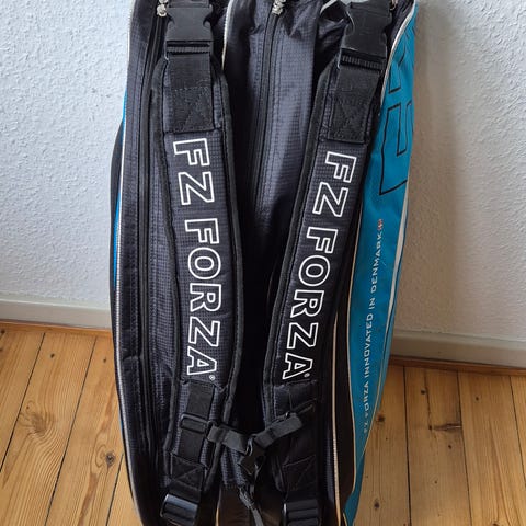 FZ Forza badminton taske i sort med plads til flere ketchere og tilbehør. Sættet omfatter en FZ Forza taske, mindst to badmintonketchere fra forskellige mærker samt et rør fjerbolde. Tasken har bærestropper og lynlåslommer til opbevaring af udstyr. Velegnet til transport og opbevaring af badmintonudstyr til både motionister og mere øvede spillere.