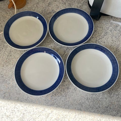 Zara Home tallerkener i porcelæn med blå-hvidt mønster. Sættet omfatter flade tallerkener med dekorativt blomsterinspireret kantmønster. Egnet til daglig brug eller opdækning ved middage. Kan anvendes til servering af hovedretter, frokost eller dessert alt efter størrelse på tallerkenerne.