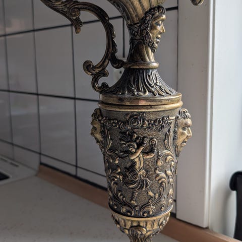 Kruset er i rigtig flot stand med en god tyngde og en naturlig patina, der vidner om dets historie.