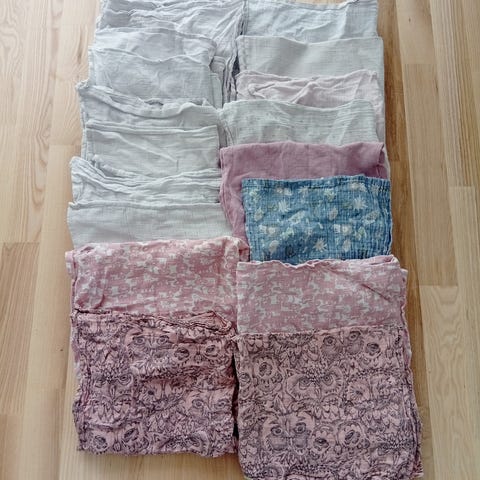 Nypris 269 kr stykket. Få alle 14 stofbleer til 700 kr.