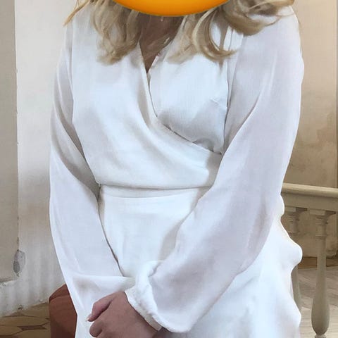 Sød hvid kjole med tynde stropper og et lille sjal.