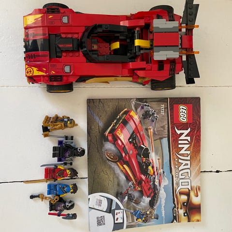 der følger brugsandvisning med, original kasse og alle figurene. 99% af klodserne er med men der kan dog mangle nogle få klodser