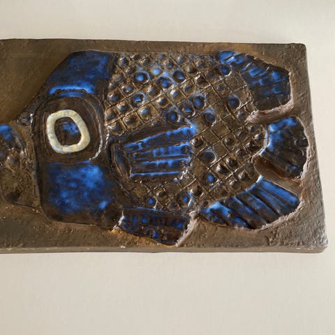 Keramisk vægdekoration udformet som en fladfisk. Dekorationen har detaljeret struktur på oversiden og en mere rå bagside med ophæng, så den kan hænges på væggen. Velegnet som maritim udsmykning i hjemmet, for eksempel i køkken, stue eller sommerhus.