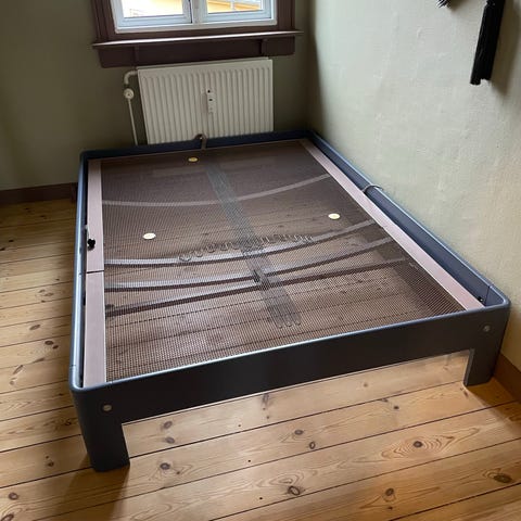 Auping sengebund, planbund 511, i sort metal samt Auronde sengestel i træ. Mål 200x80 og højde 36, fra gulv